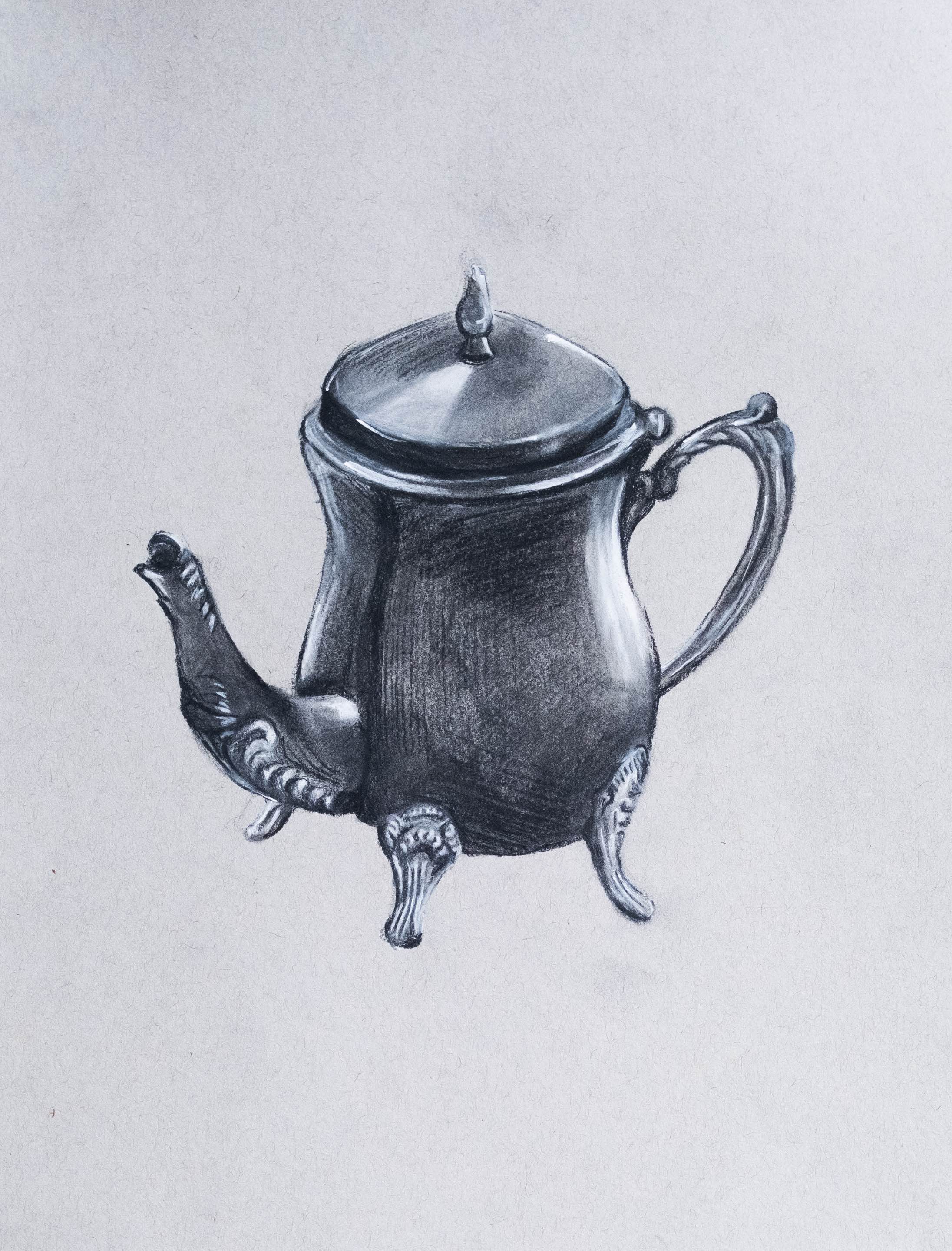 A quick practice on drawing metalic objects using white and black charcoal.