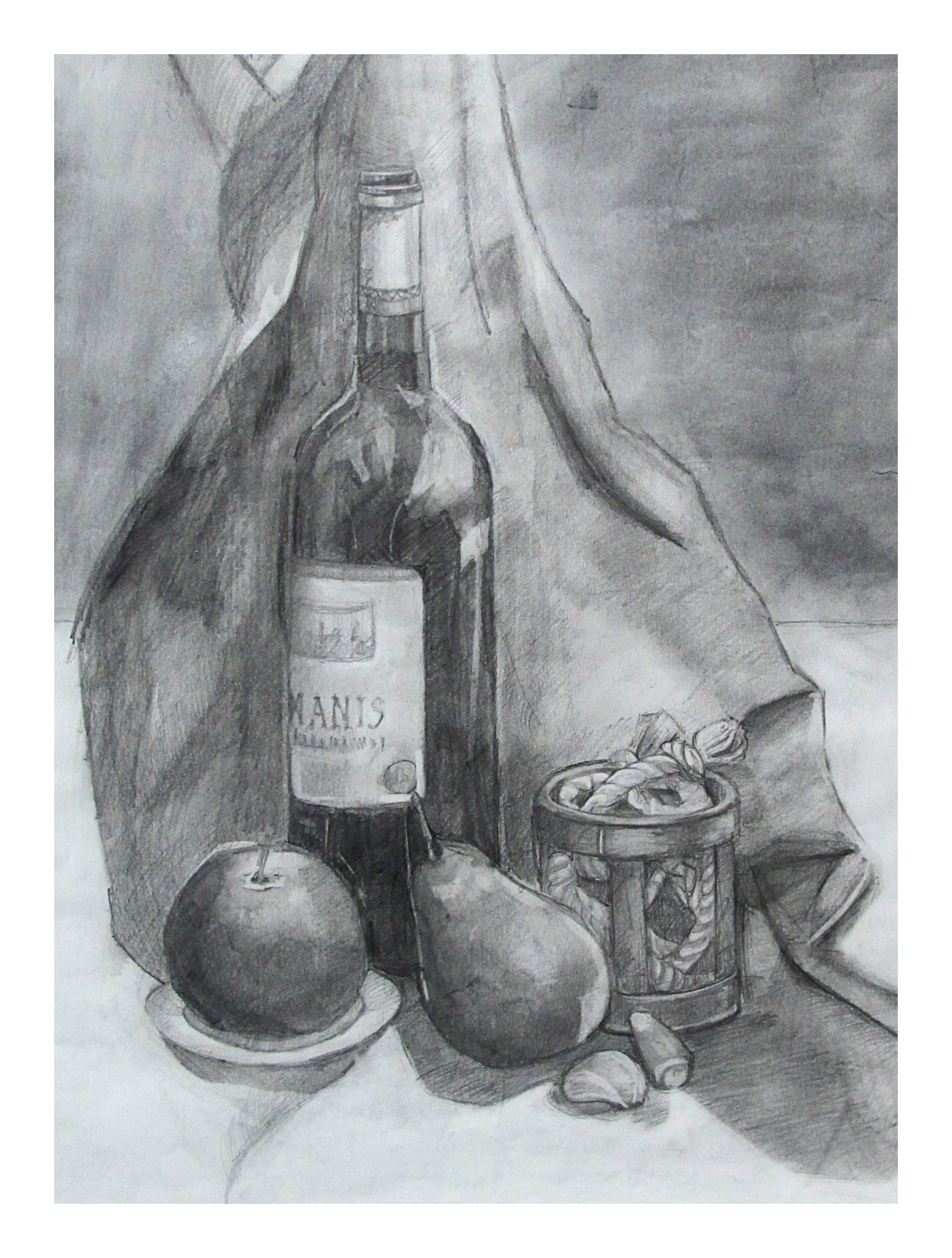 Wine, fruit, and rope (Pencil)