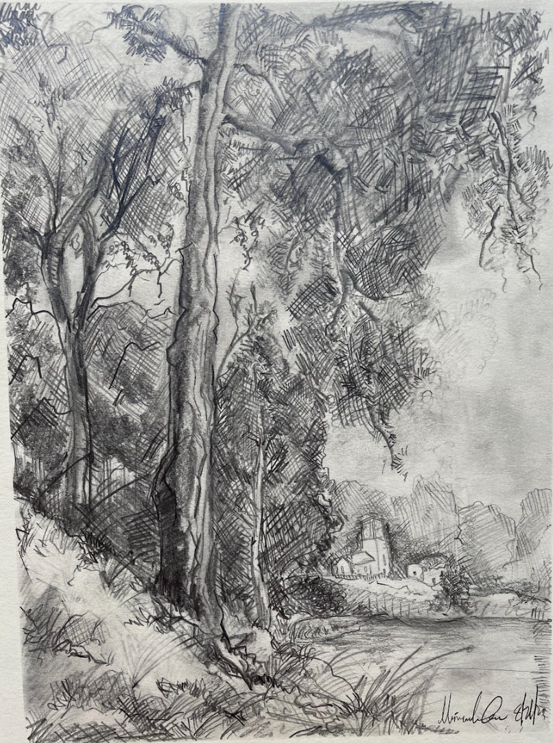 Tree and Village (pencil)